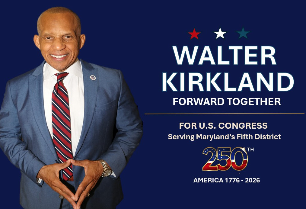 Walter R. Kirkland is focused on delivering practical, people-centered solutions that strengthen Maryland’s Fifth District. His priorities include investing in workforce development and job training, expanding access to affordable and quality healthcare for seniors and families, improving public safety through community-based strategies, and responsibly leveraging technology and AI to modernize education, government services, and local economies. Grounded in integrity and a lifetime of service, his campaign is about building opportunity, security, and shared prosperity forward together.